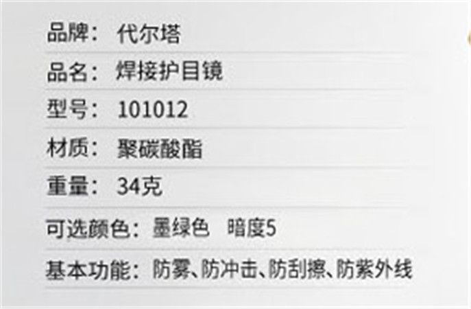 产品简介:代尔塔焊接护目镜