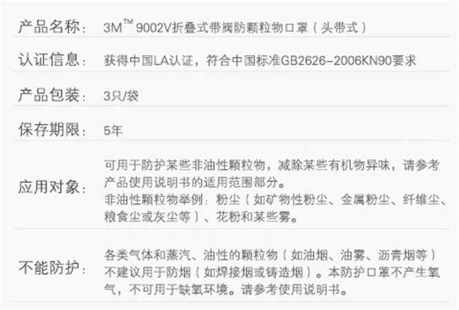 产品简介:3M9002v口罩