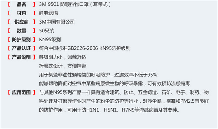 产品简介:3M9501口罩