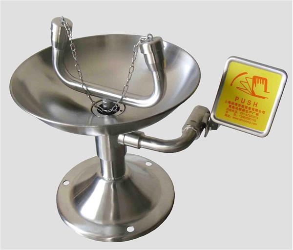 产品简介:不锈钢紧急洗眼器不锈钢紧急洗眼器产品的性能特点 1. 进水口采用球阀控制,操作方便,启闭快速,密封可靠。 2. 洗眼喷头: 采用ABS材质与铜镶件模铸一体成型制作,内装起泡器,具有过滤泡棉及防尘功能,上面防尘盖平常可防尘,使用时可随时被水冲开,并降低突然打开时短暂的高水压,避免冲伤眼睛。 3.冼眼管路设有渗水孔,以排空洗眼喷头内残留水,利于管路清洁卫生和防冻(洗眼时有一部分水由此孔排入下水管,不影
